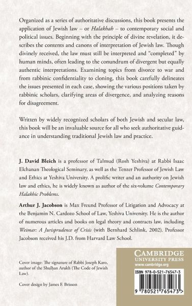 Organized as a series of authoritative discussions, this book presents the application of Jewish law - or Halakhah - to contemporary social and political issues. Beginning with the principle of divine revelation, it describes the contents and canons of interpretation of Jewish law. Though divinely received, the law must still be interpreted and 'completed' by human minds, often leading to the conundrum of divergent but equally authentic interpretations. Examining topics from divorce to war and from rabbinic confidentiality to cloning, this book carefully delineates the issues presented in each case, showing the various positions taken by rabbinic scholars, clarifying areas of divergence, and analyzing reasons for disagreement. Written by widely recognized scholars of both Jewish and secular law, this book will be an invaluable source for all who seek authoritative guidance in understanding traditional Jewish law and practice.