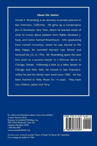 Arnold S. Rosenberg is an attorney in private practice in San Francisco, California. He grew up a Conservative Jew in Rochester, New York, where he learned much of what he knows about Judaism from Rabbi Abraham J. Karp and Cantor Samuel Rosenbaum. After graduating from Cornell University, where he was elected to Phi Beta Kappa, he attended Harvard Law School and received his J.D. in 1976. Mr. Rosenberg spent the next four years as a poverty lawyer in a Mexican barrio in Chicago, Illinois. Following a stint as a labor lawyer in Chicago and New York, he moved to San Francisco, where he and his family have lived since 1983. He has two children, Julian and Nina.