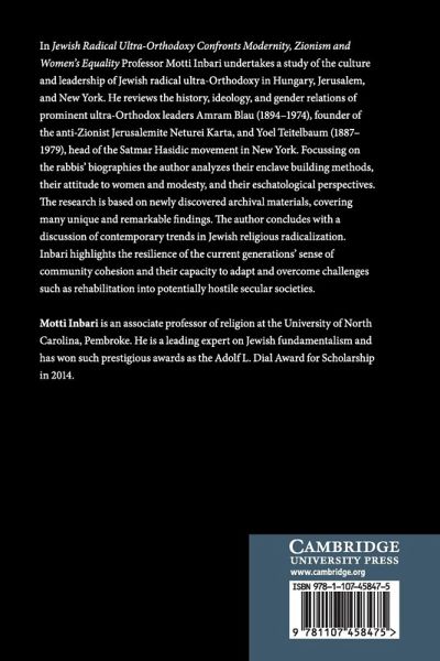 An historical study of the culture and leadership of Jewish radical ultra-Orthodoxy in Hungary, Jerusalem and New York.
