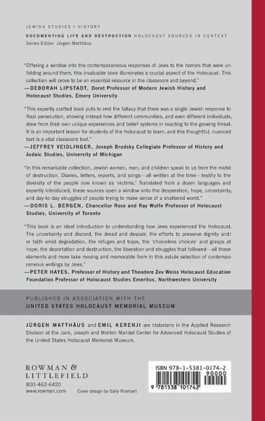 Published in association with the United States Holocaust Memorial Museum Combining rich documentation selected from the five-volume series on Jewish Responses to Persecution, this text combines a carefully curated selection of primary sources together with basic background information to illuminate key aspects of Jewish life during the Holocaust. Many available for the first time in English translation, these letters, reports, and testimonies, as well as photographs and other visual documents, provide an array of first-hand contemporaneous accounts by victims. With its focus on highlighting the diversity of Jewish experiences, perceptions and actions, the book calls into question prevailing perceptions of Jews as a homogenous, faceless, or passive group and helps complicate students' understanding of the Holocaust. While no source reader can comprehensively cover this vast subject, this volume addresses key aspects of victim experiences in terms of gender, age, location, chronology, and social and political background. Selected from vast archival collections by a team of expert scholars, this book provides a wealth of material for discussion, reflection, and further study on issues of mass atrocities in their historical and current manifestations. The book's cover photograph depicts the 1942 wedding of Salomon Schrijver and Flora Mendels in the Jewish quarter of Amsterdam. Salomon and Flora Schrijver were deported via Westerbork to Sobibor where they were murdered on July 9, 1943. USHMMPA (courtesy of Samuel Schryver).