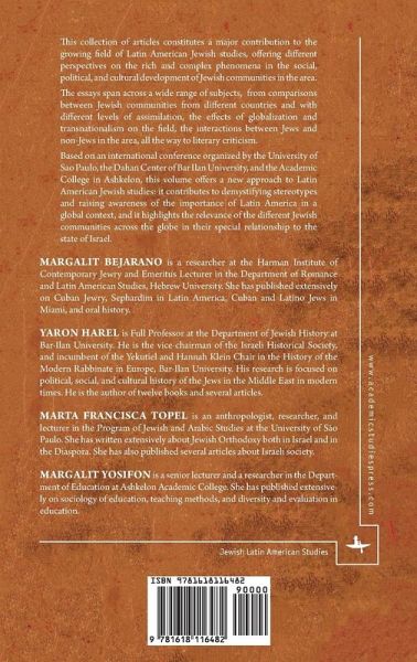 Margalit Bejarano is a researcher at the Harman Institute of Contemporary Jewry and Emeritus Lecturer in the Department of Romance and Latin American Studies, Hebrew University. She has published extensively on Cuban Jewry, Sephardim in Latin America, Cuban and Latino Jews in Miami, and oral history. Yaron Harel is full professor at the Department of Jewish History at Bar-Ilan University. He is the vice-chairman of the Israeli Historical Society, and incumbent of the Yekutiel and Hannah Klein Chair in the History of the Modern Rabbinate in Europe, Bar-Ilan University. His research deals with political, social, and cultural history of the Jews in the Middle East in modern times. He is the author of twelve books and several articles. Marta Francisca Topel is an anthropologist, researcher, and lecturer in the Program of Jewish and Arabic Studies at the University of São Paulo. She has written extensively about Jewish Orthodoxy both in Israel and in the Diaspora. She has also published several articles about Israeli society. Margalit Yosifon is a senior lecturer and a researcher in the Department of Education at Ashkelon Academic College. She has published extensively on sociology of education, teaching methods, and diversity and evaluation in education.