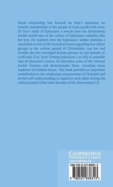 Much recent scholarship has focused on Paul's insistence on Gentile membership of the people of God equally with Jews. This book contributes to the continuing reassessment of Christian and Jewish self-understanding during the latter decades of the first century and reveals how a distinctively Jewish world view underlies Ephesians 2.