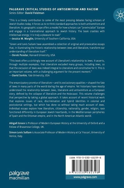 The emancipatory promise of liberalism - and its exclusionary qualities - shaped the fate of Jews in many parts of the world during the age of empire. Yet historians have mostly understood the relationship between Jews, liberalism and antisemitism as a European story, defined by the collapse of liberalism and the Holocaust. This volume challenges that perspective by taking a global approach. It takes account of recent historical work that explores issues of race, discrimination and hybrid identities in colonial and postcolonial settings, but which has done so without taking much account of Jews. Individual essays explore how liberalism, citizenship, nationality, gender, religion, race functioned differently in European Jewish heartlands, in the Mediterranean peripheries of Spain and the Ottoman empire, and in the North American Atlantic world.