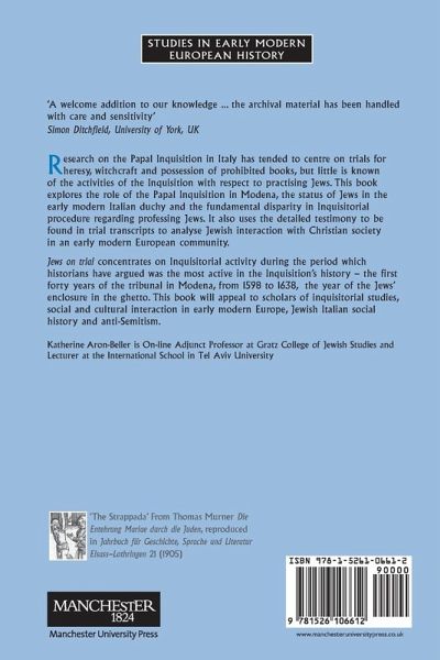 This book explores the Papal Inquisition in Modena and the status of Jews in an early modern Italian duchy. Its purpose is to deepen existing insights into the role of the former and thus lead to a better understanding of how the tribunal assumed jurisdiction over a practicing Jewish community in the seventeenth century.