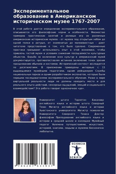 V ätoj rabote daetsq opredelenie äxperimental'nogo obrazowaniq, opisywaütsq ego filosofskie korni i osobennosti. Mnozhestwo primerow prakticheskih zanqtij i rolewyh igr iz razlichnyh amerikanskih istoricheskih muzeew - ot muzeew pod otkrytym nebom do odnoj polki w ratushe, ot znamenityh do maloizwestnyh - daüt chitatelü predstawlenie o tom, chto bylo sdelano. Sowremennye praktiki prizywaüt ispol'zowat' opyt w ätoj äkonomike, chtoby priwlech' gostej muzeq w uslowiqh snizheniq poseschaemosti kul'turnyh ob#ektow. Bor'ba za wklüchenie wseh kul'tur w amerikanskij muzej dokumentiruetsq, protiwopostawlqq istinnoe wklüchenie tochek zreniq prazdnowaniü obychaew i kostümow. Istoricheskij kontext issleduetsq po desqtiletiqm. V prilozhenii priwedeny interw'ü s 15 wydaüschimisq muzejnymi pedagogami, odnim rejndzherom Sluzhby nacional'nyh parkow i odnim razrabotchikom äxponatow, kotorye byli perwymi posledowatelqmi äxperimental'nogo obucheniq. Razwe w mire wirtual'noj real'nosti lüdi ne dolzhny nahodit' mesto i dlq real'nogo opyta dejstwij, sensornyh oschuschenij, ämocij i social'nogo wzaimodejstwiq? Jeta rabota goworit odnoznachnoe 'da'.