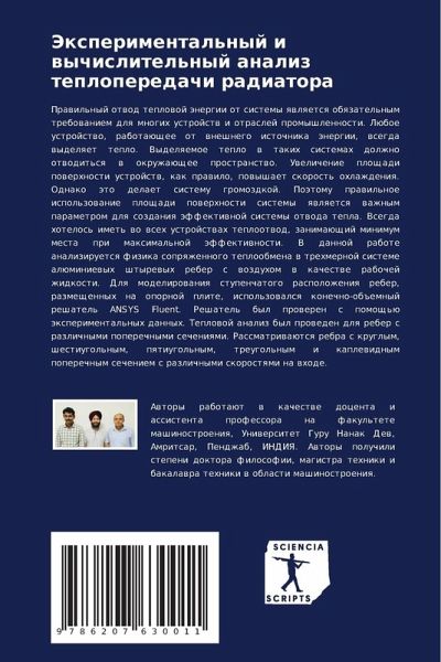 Prawil'nyj otwod teplowoj änergii ot sistemy qwlqetsq obqzatel'nym trebowaniem dlq mnogih ustrojstw i otraslej promyshlennosti. Lüboe ustrojstwo, rabotaüschee ot wneshnego istochnika änergii, wsegda wydelqet teplo. Vydelqemoe teplo w takih sistemah dolzhno otwodit'sq w okruzhaüschee prostranstwo. Uwelichenie ploschadi powerhnosti ustrojstw, kak prawilo, powyshaet skorost' ohlazhdeniq. Odnako äto delaet sistemu gromozdkoj. Poätomu prawil'noe ispol'zowanie ploschadi powerhnosti sistemy qwlqetsq wazhnym parametrom dlq sozdaniq äffektiwnoj sistemy otwoda tepla. Vsegda hotelos' imet' wo wseh ustrojstwah teplootwod, zanimaüschij minimum mesta pri maximal'noj äffektiwnosti. V dannoj rabote analiziruetsq fizika soprqzhennogo teploobmena w trehmernoj sisteme alüminiewyh shtyrewyh reber s wozduhom w kachestwe rabochej zhidkosti. Dlq modelirowaniq stupenchatogo raspolozheniq reber, razmeschennyh na opornoj plite, ispol'zowalsq konechno-ob#emnyj reshatel' ANSYS Fluent. Reshatel' byl proweren s pomosch'ü äxperimental'nyh dannyh. Teplowoj analiz byl proweden dlq reber s razlichnymi poperechnymi secheniqmi. Rassmatriwaütsq rebra s kruglym, shestiugol'nym, pqtiugol'nym, treugol'nym i kaplewidnym poperechnym secheniem s razlichnymi skorostqmi na whode.