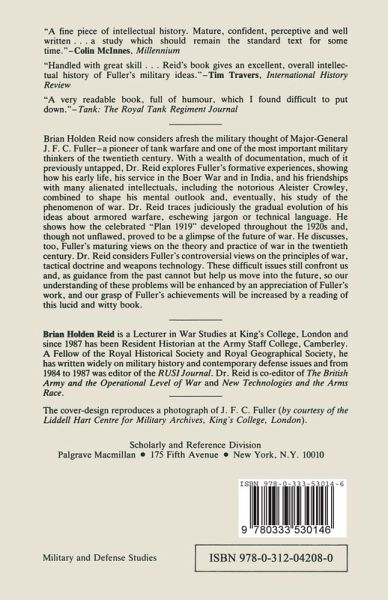 Brian Holden Reid now considers afresh the military thought of Major-General J.F.C.Fuller - a pioneer of tank warfare and one of the most important military thinkers of the twentieth century. With a wealth of documentation, much of it previously untapped, Dr Reid explores Fuller's formative experiences, showing how his early life, his service in the Boer War and in India, and his friendships with many alienated intellectuals, including the notorious Aleister Crowley, combined to shape his mental outlook and, eventually, his study of the phenomenon of war.