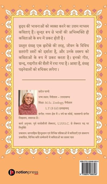 Poems are the best medium to express the feelings of the heart. When beautifully composed one's inner expressions take the form of poetry. Saroj Pande has been interested in composing poems since her youth. Her first recorded poems date back to 1960 when she was pursuing her master's degree. 'Jharokha Satrangi Suro Ka' is a collection of poems that reflects the different colours of life's experiences encountered by the poet during the journey of her life. The poet grew up in a very beautiful part of India - Uttarakhand and therefore she finds inspiration for her compositions in the uplifting energy of nature. The theme of the book is joyful, interspersed with inspiring social messages, personal narratives, and vibrant festive celebrations. The present collection is like an insightful glimpse through a beautiful window into the diverse colourful tones of life expressed through the medium of poems. These are composed in the style of song, verse, and prose. The poet hopes that the readers will find the diverse poems interesting.