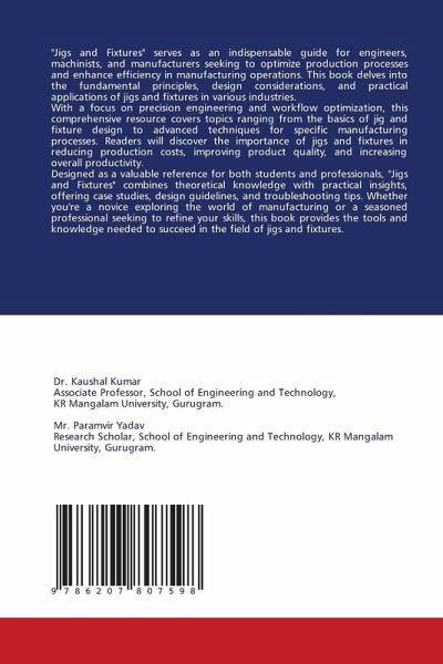"Jigs and Fixtures" serves as an indispensable guide for engineers, machinists, and manufacturers seeking to optimize production processes and enhance efficiency in manufacturing operations. This book delves into the fundamental principles, design considerations, and practical applications of jigs and fixtures in various industries.With a focus on precision engineering and workflow optimization, this comprehensive resource covers topics ranging from the basics of jig and fixture design to advanced techniques for specific manufacturing processes. Readers will discover the importance of jigs and fixtures in reducing production costs, improving product quality, and increasing overall productivity.Designed as a valuable reference for both students and professionals, "Jigs and Fixtures" combines theoretical knowledge with practical insights, offering case studies, design guidelines, and troubleshooting tips. Whether you're a novice exploring the world of manufacturing or a seasoned professional seeking to refine your skills, this book provides the tools and knowledge needed to succeed in the field of jigs and fixtures.
