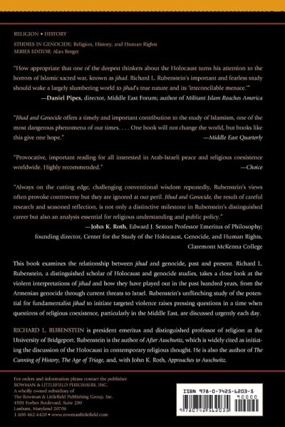 This book examines the relationship between jihad and genocide, past and present. Richard L. Rubenstein, a respected scholar in the field of genocide studies, takes a close look at the violent interpretations of jihad and how they have played out in the past hundred years, from the Armenian genocide through current threats to Israel. Rubenstein's unflinching study of the potential for fundamentalist jihad to initiate targeted violence raises pressing questions in a time when questions of religious co-existence, particularly in the Middle East, are discussed urgently each day.
