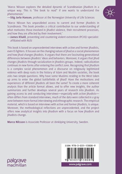 This book is based on unprecedented interviews with active and former jihadists, even IS fighters. It focuses on the changing nature of jihad as a social phenomenon and how jihad changes jihadists. It argues that there are fascinating generational differences between jihadists' ideas and behaviors. Moreover, it argues that jihad changes jihadists through socialization in jihadists groups. Indeed, radicalization continues in new forms after entering the conflict zone. Recognizing that jihadism is a complex social phenomenon and a discourse on religiously legitimized violence with deep roots in the history of Islam and Muslim societies, the book asks two simple questions. Why have some Muslims residing in the West taken up arms to enter the global battlefields of jihad? Have the motivations and experiences of different jihadists all been the same? To create a more coherent analysis than the article format allows, and to offer new insights, the author summarizes and further develops several years of research into jihadism. As gaining access to and conducting interviews-especially with active jihadists-often differs from standard interviews, much of the data were collected in a gray zone between more formal interviewing and ethnographic research. The empirical material, which is based on interviews with active and former jihadists, is unique. Moreover, the methodological reflections are unprecedented, and the project offers new analytical insights into jihadism with a focus on how jihadism and jihadists change.