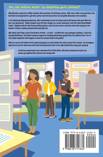 Jilly McPeak is a geek chic middle-schooler with a penchant for all things science. Well, she's a little more geek than chic, but that's to be expected for a girl who carries home the bones from her owl pellet dissection in her lunchbox.In her Fabulously Disgusting adventure, Jilly is determined to win the school science fair because this year offers the best-ever grand prize. Things threaten to go off track, though, as a school-wide germ crisis hits Cedar Brook Middle School. Together with her best friend and lab assistant, Josh, she must work to save the science fair and get to the bottom of what is making everyone barf-tastically sick. Jilly enlists Josh's help to get to the bottom of what-or who-is behind the crazy pathogen outbreak. Could it be Squeaky McPherson, the janitor everyone suspects of hoarding old ketchup packets from the cafeteria floor? Or is it nosy Steph Steepleton who happens to have the messiest desk in the galaxy?Jilly has to get to the bottom of the mystery plaguing her school before the entire science fair is ruined. Her outrageous experiments and her adventures with Josh eventually point them to the culprit behind the nasty germ uprising.Amid funny experiments and a basement full of Petri dishes, Jilly shows everyone that girls and science go together like chemicals and compounds!