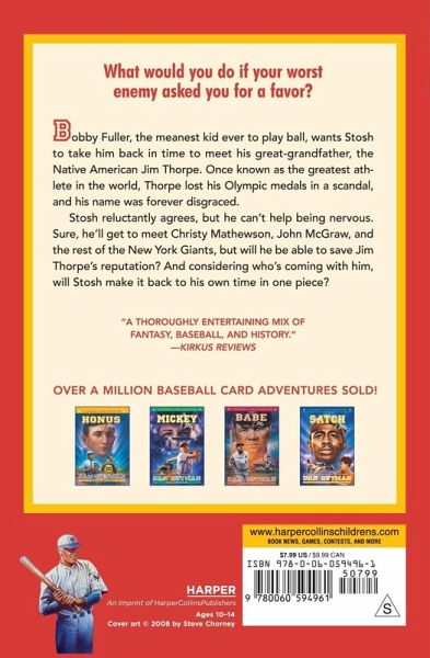 He was the world's greatest athlete, and a hero--until his medals were taken away. Stosh is shocked when his enemy, Bobby Fuller, begs him for a favor. He wants Stosh to take him back in time to meet Native American Jim Thorpe--an Olympic champion who lost his medals in a scandal. Thorpe went on to play professional baseball and football, but he could never again achieve such fame. His name was disgraced. Join Stosh and Fuller on a quest to save Jim's reputation. You'll meet Christy Mathewson, John McGraw, and the rest of the New York Giants in this eighth exciting, action-packed baseball card adventure!