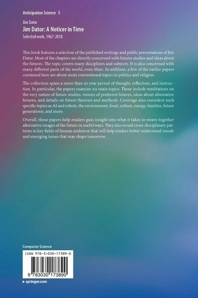 This book features a selection of the published writings and public presentations of Jim Dator. Most of the chapters are directly concerned with futures studies and ideas about the futures. The topic covers many disciplines and subjects. It is also concerned with many different parts of the world, even Mars. In addition, a few of the earlier papers contained here are about more conventional topics in politics and religion.