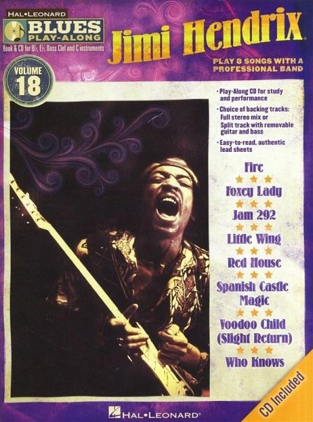 Play Along für C, Bb, Eb und Bassschlüssel. Jeder Song ist zweimal enthalten, einmal als Vollversion und einmal als Mitspielversion. Songs: Fire ¿ Foxey Lady ¿ Jam 292 ¿ Little Wing ¿ Red House ¿ Spanish Castle Magic ¿ Voodoo Child (Slight Return) ¿ Who Knows. For use with all C, Bb, Eb, and Bass Clef instruments, the Hal Leonard Blues Play-Along series is the ultimate jamming tool for all blues musicians. With easy-to-read lead sheets and other split-track choices on the included CD, these first-of-a-kind packages will bring your local blues jam right into your house! Each song on the CD includes two tracks: a full-stereo mix, and a split-track mix with removable guitar, bass, piano and harmonica parts. The CD is playable on any CD player, and is also enhanced so Mac and PC users can adjust the recording to any tempo without changing the pitch! 8 songs: Fire ¿ Foxey Lady ¿ Jam 292 ¿ Little Wing ¿ Red House ¿ Spanish Castle Magic ¿ Voodoo Child (Slight Return) ¿ Who Knows.