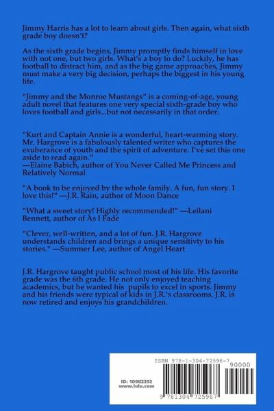 Jimmy Harris has a lot to learn about girls. Then again, what sixth grade boy doesn't? As the sixth grade begins, Jimmy promptly finds himself in love with not one, but two girls. What's a boy to do? Luckily, he has football to distract him, and as the big game approaches, Jimmy must make a very big decision, perhaps the biggest in his young life. "Jimmy and the Monroe Mustangs" is a coming-of-age, young adult novel that features one very special sixth-grade boy who loves football and girls...but not necessarily in that order.