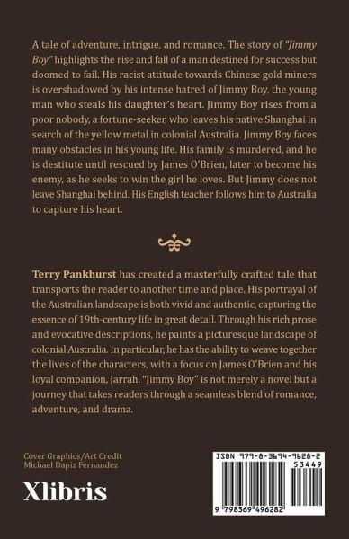 A tale of adventure, intrigue, and romance. The story of "Jimmy Boy" highlights the rise and fall of a man destined for success but doomed to fail. His racist attitude towards Chinese gold miners is overshadowed by his intense hatred of Jimmy Boy, the young man who steals his daughter's heart. Jimmy Boy rises from a poor nobody, a fortune-seeker, who leaves his native Shanghai in search of the yellow metal in colonial Australia. Jimmy Boy faces many obstacles in his young life. His family is murdered, and he is destitute until rescued by James O'Brien, later to become his enemy, as he seeks to win the girl he loves. But Jimmy does not leave Shanghai behind. His English teacher follows him to Australia to capture his heart.