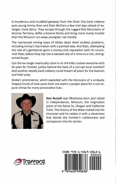 A murderous and muddled getaway from the Silver City bank robbery puts young Jimmy Doss and Slats McClary a few trail days ahead of ex-ranger, Hank Darcy. They escape through the rugged Gila Mountains of Arizona Territory, defile a bizarre family and bring more manly trouble than the Missouri run-away youngster can handle. The raw-boned mining town of Globe deals them endless problems, including Jimmy's fascination with a painted lady. And Slats, attempting the role of a gentleman gains a money-slick reputation with his cousin, Irish Pete, before they slip into a twisted sale of a mine to a rich, strong-armed buyer. Can the ex-ranger eventually close in on the killer outlaw twosome with his plan for frontier justice behind the back of a corrupt local marshal? And another deadly bank robbery could thwart all plans for the lawmen and their prey. Globe's prominence, which exploded with the discovery of a uniquely shaped chunk of near-pure silver ore seems a proper place for a not-so-pure climax for many provocative lives.