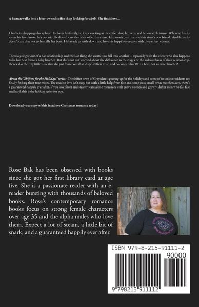 A human walks into a bear-owned coffee shop looking for a job. She finds love… Charlie is a happy-go-lucky bear. He loves his family, he loves working at the coffee shop he owns, and he loves Christmas. When he finally meets his fated mate, he's ecstatic. He doesn't care that she's older than him. He doesn't care that she's his sister's best friend. And he really doesn't care that he's technically her boss. He's ready to settle down and have his happily-ever-after with the perfect woman. Theresa just got out of a bad relationship and the last thing she wants is to fall into another - especially with the client who also happens to be her best friend's baby brother. But she's not just worried about the difference in their ages or the awkwardness of their relationship, there's also the tiny little issue that she just found out that shape shifters exist, and not only is her BFF a bear, but so is her brother! About the "Shifters for the Holidays" series: The shifter town of Greysden is gearing up for the holidays and some of its sexiest residents are finally finding their true mates. The road to love isn't easy, but with a little help from fate and some nosy small-town matchmakers, there's a guaranteed happily ever after. If you love short and steamy standalone romances with curvy women and growly shifter men who fall fast and hard, this is the holiday series for you. Download your copy of this instalove Christmas romance today!