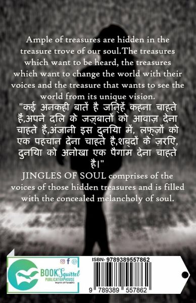 Ample of treasures are hidden in the treasure trove of our soul. The treasures which want to be heard, the treasures which want to change the world with their voices and the treasure that wants to see the world from its unique vision. ""¿¿ ¿¿¿¿¿ ¿¿¿¿¿ ¿¿ ¿¿¿¿¿¿¿ ¿¿¿¿ ¿¿¿¿¿ ¿¿¿, ¿¿¿¿ ¿¿¿ ¿¿ ¿¿¿¿¿¿¿¿¿ ¿¿ ¿¿¿¿¿ ¿¿¿¿ ¿¿¿¿¿ ¿¿¿, ¿¿¿¿¿¿ ¿¿ ¿¿¿¿¿¿ ¿¿¿, ¿¿¿¿¿¿¿¿ ¿¿ ¿¿ ¿¿¿¿¿ ¿¿¿¿ ¿¿¿¿¿ ¿¿, ¿¿¿¿¿¿ ¿¿ ¿¿¿¿¿, ¿¿¿¿¿¿ ¿¿ ¿¿¿¿¿ ¿¿ ¿¿¿¿¿ ¿¿¿¿ ¿¿¿¿¿ ¿¿¿"" JINGLES OF SOUL comprises of the voices of those hidden treasures and is filled with the concealed melancholy of soul.