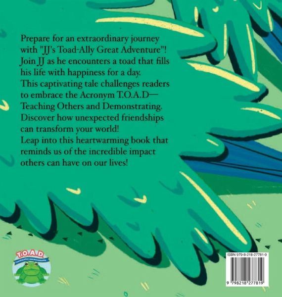 Prepare for an extraordinary journey with "JJ's Toad-Ally Great Adventure"! Join JJ as he encounters a toad that fills his life with happiness for a day. This captivating tale challenges readers to embrace the Acronym T.O.A.D-Teaching Others and Demonstrating. Discover how unexpected friendships can transform your world! Stay tuned for the release of this heartwarming book that reminds us of the incredible impact others can have on our lives! This book aims to provide children with the framework and language to develop a foundation of strong character as they begin to navigate everyday life. Practicing virtues and embracing T.O.A.D (Teaching Others And Demonstrating) is essential in everyday life. Virtues like kindness, compassion, integrity, and empathy shape our interactions, fostering connection, trust, and personal fulfillment. Sharing virtues with others inspires positive change and creates a more compassionate society. Let's bring the magic of T.O.A.D into our lives and make a difference in the world around us. Teaching Others And Demonstrating ___________________. (YOU FILL IN THE VIRTUE OF WHAT YOU WANT TO DEMONSTRATE)