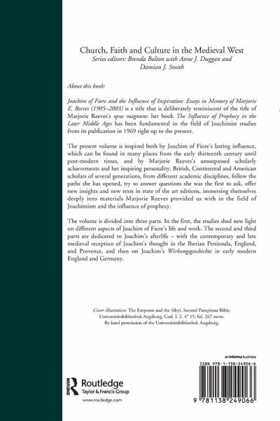Contents: Preface; In memory of Marjorie E. Reeves, Bernard McGinn; Part I Perspectives on Joachim of Fiore's Life and Works: Joachim's unnoticed pattern of history: the second Diffinitio, E. Randolpf Daniel; Joachim of Fiore and the 12th-century papacy, Bernard McGinn; Joachim of Fiore and the theology of the New Testament, Christopher Rowland; Joachim of Fiore as political thinker, Matthias Riedl; Prophecy and exegesis in the Visio attributed to Joachim of Fiore, John V. Fleming. Part II Joachim of Fiore's Influence in the Later Middle Ages: Teste David cum Sybilla: the Tiburtine Sybil at the court of Sancho el Fuerte, Fabio Troncarelli; Joachim or Joachimist? The short excerpt version of the Psalterium decem chordarum in context, Julia Eva Wannenmacher; A pope without successor. Ralph of Coggeshall, Ralph Niger, Robert of Auxerre and the early reception of Joachim of Fiore's ideas in England, Christopher Egger. Part III Joachim of Fiore's Influence in Early Modern England: English Joachimism and its codicological context: a list of Joachite manuscripts of English origin or provenance before 1600, Kathryn Kerby-Fulton; Joachim of Fiore through Johannes Wolff: a visit to the archives of Joachism in the Lectiones memorabiles (1600), Sabine Schmolinsky; De Oraculis Gentilium (1673) and the Sibilla Erithea Babilonica: pseudo-Joachimite prophecy in a new intellectual context, Anke Holdenried; Selected bibliography of Marjorie Reeves's writings on Joachim of Fiore and Joachism, Julia Eva Wannenmacher; Indexes.