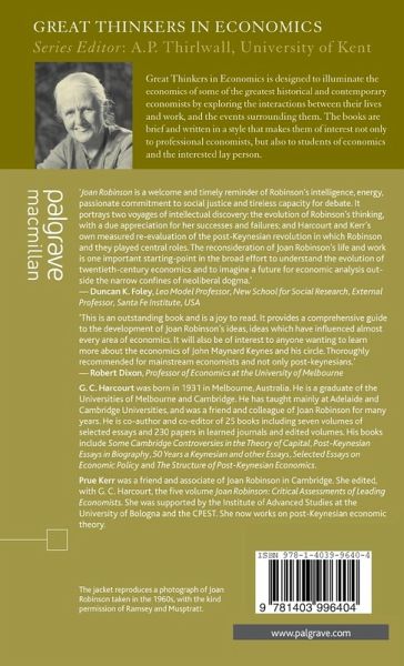"Joan Robinson' is a welcome and timely reminder of Robinson's intelligence, energy, passionate commitment to social justice, and tireless capacity for debate. It portrays two voyages of intellectual discovery: the evolution of Robinson's thinking, with a due appreciation for her successes and failures; and Kerr and Harcourt's own measured re-evaluation of the post-Keynesian revolution in which Robinson and they played central roles. The reconsideration of Joan Robinson's life and work is one important starting-point in the broad effort to understand the evolution of twentieth-century economics and to imagine a future for economic analysis outside the narrow confines of neoliberal dogma." - Duncan K. Foley, Leo Model Professor, New School for Social Research, External Professor, Santa Fe Institute, US.