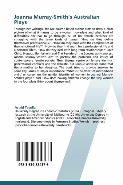 Through her writings, the Melbourne-based author aims to draw a clear picture of what it means to be a woman nowadays and what kind of difficulties one has to go through. All of her female heroines are struggling with the same kinds of issues: How do they define themselves professionally? , How do they cope with the complexities of their emotional life? , How do they find room for a professional life and a personal life? , How do they deal with long-term relationships? Love Child, Honour, Bombshells and The Female of the Species aptly express Joanna Murray-Smith s aim to portray the problems and issues of contemporary female society. Their themes centre on female identity, generational conflicts and the delicate, but unique universal bond that ties a mother to her daughter. The book tries to provide answers to some key issues of major importance: What is the effect of motherhood and / or career on the gender identity of women in Joanna Murray-Smith s plays? and How does having children change the way women in the four plays think about themselves?