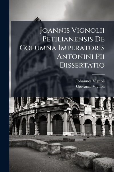 Joannis Vignolii Petilianensis De Columna Imperatoris Antonini Pii Dissertatio is a Latin text exploring the column dedicated to the Roman Emperor Antoninus Pius. This work by Johannes Vignoli (Giovanni Vignoli) delves into the historical and artistic significance of this monument, offering insights into the art and history of ancient Rome. It provides a detailed discussion of the column, its construction, and its place within the broader context of Roman imperial history and artistic traditions. This dissertation is an important resource for scholars and students interested in Roman history, art, and archaeology, providing valuable perspectives on one of Rome's notable historical artifacts. This work has been selected by scholars as being culturally important, and is part of the knowledge base of civilization as we know it. This work was reproduced from the original artifact, and remains as true to the original work as possible. Therefore, you will see the original copyright references, library stamps (as most of these works have been housed in our most important libraries around the world), and other notations in the work. This work is in the public domain in the United States of America, and possibly other nations. Within the United States, you may freely copy and distribute this work, as no entity (individual or corporate) has a copyright on the body of the work. As a reproduction of a historical artifact, this work may contain missing or blurred pages, poor pictures, errant marks, etc. Scholars believe, and we concur, that this work is important enough to be preserved, reproduced, and made generally available to the public. We appreciate your support of the preservation process, and thank you for being an important part of keeping this knowledge alive and relevant.
