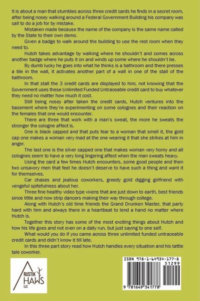 It is about a man that stumbles across three credit cards he fi nds in a secret room, after being nosey walking around a Federal Government Building his company was call to do a job for by mistake.Mistaken made because the name of the company is the same name called by the State to their own demo.Given a badge to walk around the building to use the rest room when they need to.Hutch takes advantage by walking where he shouldnt and comes across another badge where he puts it on and winds up some where he shouldnt be.By dumb lucky he goes into what he thinks is a bathroom and there presses a tile in the wall, it activates another part of a wall in one of the stall of the bathroom.In that stall the 3 credit cards are displayed to him, not knowing that the Government uses these Unlimited Funded Untraceable credit card to buy whatever they need no matter how much it cost.Still being nosey after taken the credit cards, Hutch ventures into the basement where they're experimenting on some colognes and their reaction on the females that one would encounter.There are three that work with a mans sweat, the more he sweats the stronger the cologne affect is.One is black capped and that puts fear to a woman that smell it, the gold cap one makes a woman very mad at the one wearing it that she strikes at him in anger.The last one is the silver capped one that makes woman very horny and all colognes seem to have a very long lingering affect when the man sweats heavy. Using the card a few times Hutch encounters, some good people and then two unsavory men that feel he doesn't deserve to have such a thing and want it for themselves.Car chases and jealous coworkers, greedy gold digging girlfriend with vengeful spitefulness about her.Three fine healthy video type vixens that are just down to earth, best friends since little and now strip dancers making their way through college.Along with Hutchs old time friends the Grand Drunken Master, that party hard with him and always there in a heartbeat to lend a hand no matter where Hutch is.Together this story has some of the most exciting things about Hutch and how his life goes and not even on a daily run, but just saying to one self.What would you do if you came across three unlimited funded untraceable credit cards and didn't know it till late.In this three part story read how Hutch handles every situation and his tattle tale coworker.