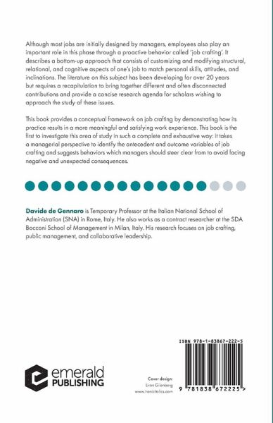 The proactive behavior of job crafting is intended to better align a job with the individual's personal characteristics, knowledge, skills, and abilities. This book provides a uniform conceptual framework on this area of study and demonstrates how its practice results in a more meaningful and satisfying work experience.