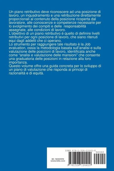 Il volume presenta le più affermate metodologie di valutazione delle posizioni, e guida l'utente, attraverso una concreta e dettagliata analisi,in tutte le fasi necessarie all'acquisizione delle competenze per lo sviluppo di piani di valutazione rivolti alla definizione di corrette politiche retributive.