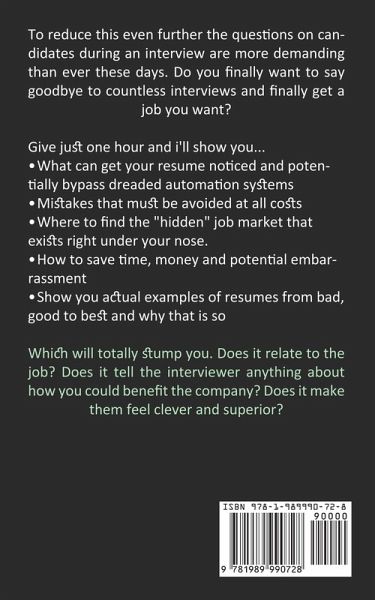 To Reduce This Even Further The Questions On Candidates During An Interview Are More Demanding Than Ever These Days. Do You Finally Want To Say Goodbye To Countless Interviews And Finally Get A Job You Want? Give Just One Hour And I'll Show You... What Can Get Your Resume Noticed And Potentially Bypass Dreaded Automation Systems Mistakes That Must Be Avoided At All Costs Where To Find The "Hidden" Job Market That Exists Right Under Your Nose. How To Save Time, Money And Potential Embarrassment Show You Actual Examples Of Resumes From Bad, Good To Best And Why That Is So Which Will Totally Stump You. Does It Relate To The Job? Does It Tell The Interviewer Anything About How You Could Benefit The Company? Does It Make Them Feel Clever And Superior?