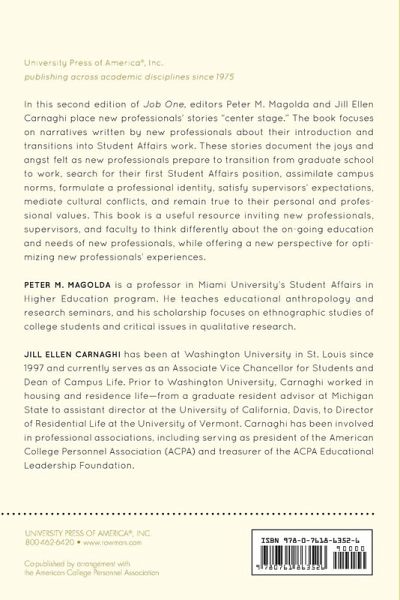 This book contains narratives written by new professionals about their introduction and transitions into Student Affairs. This book is a useful resource inviting new professionals, supervisors, and faculty to think differently about the on-going education and needs of new professionals, while offering a new perspective for optimizing new professionals' experiences.
