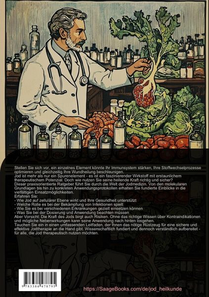Dieser fundierte medizinische Ratgeber bietet einen umfassenden Einblick in die vielfältigen Anwendungsmöglichkeiten von Jod in der modernen Medizin.Der erste Teil widmet sich den wissenschaftlichen Grundlagen der Jodmedizin. Hier werden die chemischen Eigenschaften und biochemischen Prozesse im Körper detailliert erläutert. Besondere Aufmerksamkeit gilt dabei der Rolle von Jod für die Schilddrüsenfunktion und das Immunsystem.Im therapeutischen Teil werden sowohl topische als auch systemische Behandlungsmethoden vorgestellt. Die Leser erfahren, wie Jod bei der Wunddesinfektion und verschiedenen Hauterkrankungen eingesetzt werden kann. Praktische Anleitungen zur antiseptischen Anwendung und Wundbehandlung ermöglichen eine sichere Durchführung.Ein weiterer Schwerpunkt liegt auf den medizinischen Indikationen. Das Buch behandelt die Rolle von Jod bei Infektionskrankheiten, Stoffwechselstörungen und Heilungsprozessen. Dabei werden verschiedene Therapieansätze für bakterielle, virale und Pilzinfektionen vorgestellt.Der praktische Teil enthält wichtige Informationen zu Dosierung, Verabreichung und Sicherheitsaspekten. Detaillierte Anleitungen zu Konzentrationsstufen und Anwendungsformen sowie Hinweise zu möglichen Kontraindikationen und Nebenwirkungen gewährleisten eine sichere Anwendung.Dieser Jod-Ratgeber richtet sich an medizinisches Fachpersonal und interessierte Laien, die sich fundiert über die therapeutischen Möglichkeiten der Jodmedizin informieren möchten.Dieses Buch wurde unter Verwendung innovativer Technologien wie Künstlicher Intelligenz sowie eigens entwickelter Tools erstellt - etwa bei der Ideenfindung, der Recherche, dem Schreiben, dem Lektorat, der Qualitätssicherung und der Gestaltung dekorativer Illustrationen.So möchten wir Ihnen ein besonders stimmiges, modernes und noch hochwertigeres Leseerlebnis bieten.