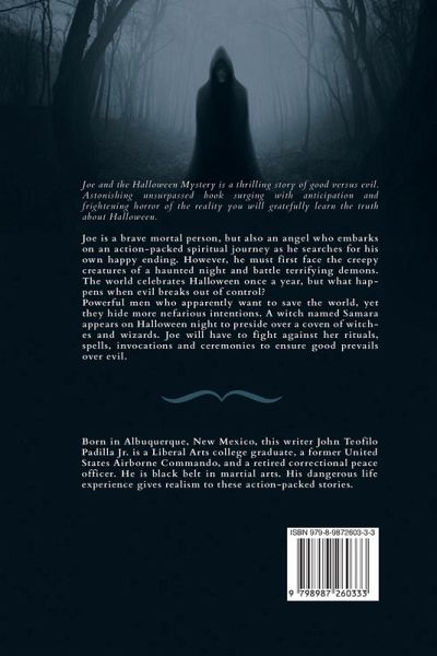 Joe and the HALLOWEEN MYSTERY is a thrilling story of good versus evil. Joe is an athletically young human and a brave person, but also an angel who embarks on an action-packed spiritual journey as he searches for his own happy ending. However, he must first face the creepy creatures of a haunted night and battle deadly demons. The world celebrates Halloween once a year, but what happens when EVIL suddenly explodes out of control? A man of power appears, ostensibly to save the world, but what is his true motive? A high-ranking witch called: "Samara" Appears on Halloween night that has a meeting of witches and warlocks to perform rituals and spells, with invocations and worship, but why?
