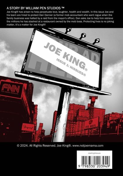 Joe King® has arisen to help perpetuate love, laughter, health and wealth. In this issue Joe and his team are hired to protect Dan Danner (a former mob accountant who went rogue when the family business was halted by a raid from the mayor's office). Dan asks Joe to help him retrieve the millions he has stashed at a restaurant owned by the mob boss. Protecting lives is no joking matter, it's a matter for Joe King®!