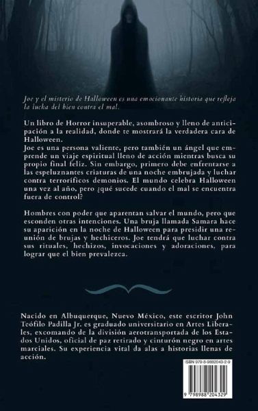 Samara the great "Witch" will challenge the worlds leaders! ¡Samara, la gran bruja, desafiará a los líderes mundiales...!Joe y Herbie tienen que luchar contra la Gran Bruja Samara y tambien El Diablo..!"Joe y el misterio de Halloween" es una emocionante historia que refleja la lucha del bien contra el mal.Joe es una persona valiente, pero también un ángel que emprende un viaje espiritual lleno de acción mientras busca su propio final feliz. Sin embargo, primero debe enfrentarse a las espeluznantes criaturas de una noche embrujada y luchar contra terroríficos demonios. El mundo celebra Halloween una vez al año, pero ¿qué sucede cuando el mal se encuentra fuera de control?Hombres poderosos que aparentemente quieren salvar el mundo, pero que esconden otras intenciones. Una bruja llamada Samara hace su aparición en la noche de Halloween para presidir una reunión de brujas y brujos. Joe tendrá que luchar contra sus rituales, hechizos, invocaciones y adoraciones, para lograr que el bien prevalezca.