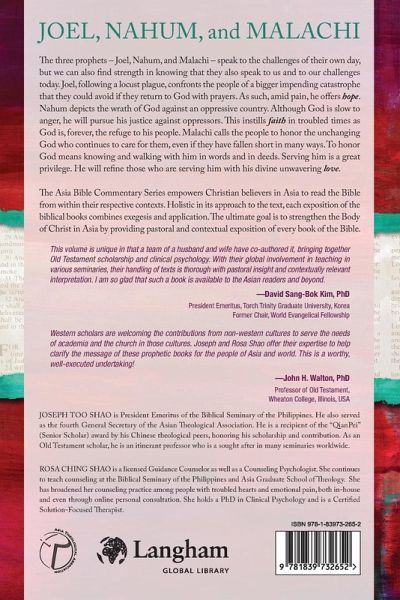 The three prophets - Joel, Nahum, and Malachi - speak to the challenges of their own day. Joel, following a locust plague, confronts the people of a bigger impending catastrophe that they could avoid if they return to God with prayers. As such, amid pain, he offers hope. Nahum depicts the wrath of God against an oppressive country. Although God is slow to anger, he will pursue his justice against oppressors. This instills faith in troubled times as God is, forever, the refuge to his people. Malachi calls the people to honor the unchanging God who continues to care for them, even if they have fallen short in many ways. To honor God means knowing and walking with him in words and in deeds. Serving him is a great privilege. He will refine those who are serving him with his divine unwavering love. The Asia Bible Commentary Series empowers Christian believers in Asia to read the Bible from within their respective contexts. Holistic in its approach to the text, each exposition of the biblical books combines exegesis and application. The ultimate goal is to strengthen the Body of Christ in Asia by providing pastoral and contextual exposition of every book of the Bible.