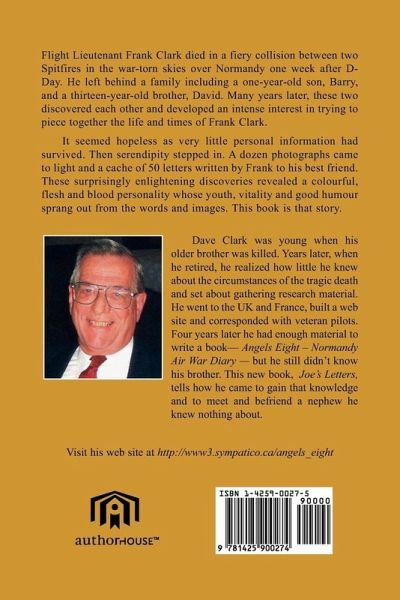 Flight Lieutenant Frank Clark died in a fiery collision between two Spitfires in the war-torn skies over Normandy. He left behind a one-year-old son and a thirteen-year-old brother. These two had an intense interest in trying to piece together the life and times of Frank Clark. However, there was no stash of photographs, no neat pile of letters, no log book, no diary. Then serendipity stepped in. A dozen photographs of Frank came to light and a cache of 50 letters written to his best friend. These letters revealed a colourful, flesh and blood person whose youth, vitality and good humour sprang out from the pages. This book is that story.