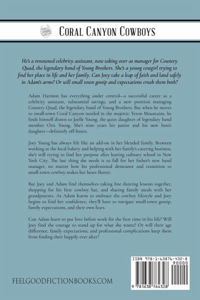 He's a renowned celebrity assistant, now taking over as manager for Country Quad, the legendary band of Young Brothers. She's a young cowgirl trying to find her place in life and her family. Can Joey take a leap of faith and land safely in Adam's arms? Or will small town gossip and expectations crush them both? Adam Harmon has everything under control-a successful career as a celebrity assistant, substantial savings, and a new position managing Country Quad, the legendary band of Young Brothers. But when he moves to small-town Coral Canyon nestled in the majestic Teton Mountains, he finds himself drawn to Joelle Young, the quiet daughter of legendary band member Otis Young. She's nine years his junior and his new boss's daughter-definitely off-limits. Joey Young has always felt like an add-on in her blended family. Between working at the local bakery and helping with her family's catering business, she's still trying to find her purpose after leaving culinary school in New York City. The last thing she needs is to fall for her father's new band manager, no matter how his professional demeanor and transition to small-town cowboy makes her heart flutter. But Joey and Adam find themselves taking line dancing lessons together, shopping for his first cowboy hat, and sharing family meals with her grandparents. As Adam learns to embrace the cowboy lifestyle and Joey begins to find her confidence, they'll have to navigate small-town gossip, family expectations, and their own fears. Can Adam learn to put love before work for the first time in his life? Will Joey find the courage to stand up for what she wants? Or will their age difference, family expectations, and professional complications keep them from finding their happily ever after? Continue the beloved Young family saga in this clean, Christian cowboy romance by USA Today and Top 10 Kindle All-Star author Liz Isaacson!