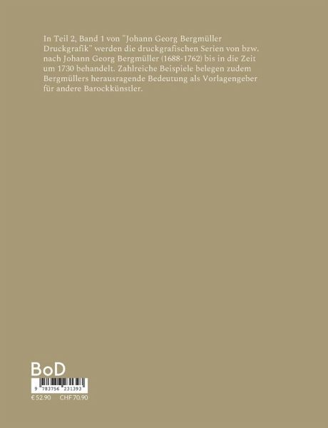 In Teil 2, Band 1 von "Johann Georg Bergmüller Druckgrafik" werden die druckgrafischen Serien von bzw. nach Johann Georg Bergmüller (1688-1762) bis in die Zeit um 1730 behandelt. Zahlreiche Beispiele belegen zudem Bergmüllers herausragende Bedeutung als Vorlagengeber für andere Barockkünstler.