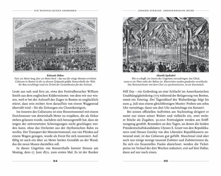 Im Jahr 1872 ist Boston Schauplatz eines spektakulären Musikfestivals, des World's Peace Jubilee. Eine Pop-up- Halle für 100.000 Zuhörer und Konzerte mit 2.000 Musikern, so lauten die Eckdaten dieses Events, für das die Weltstars der Musik in die USA geholt werden. Einer von ihnen: Walzerkönig Johann Strauss. Im Juni 1872 schifft sich der Impresario und talentierte Selbstvermarkter mit Künstler:innen aus ganz Europa nach Boston ein. Mitreißend erzählt nehmen uns Bernhard Ecker und Peter Hosek mit auf eine Abenteuerreise ins Herz einer flirrenden Epoche. In eine Zeit des Umbruchs, an deren Ende die Geschichte der Musik neu geschrieben werden muss. Und sich Johann Strauss neu erfunden hat.