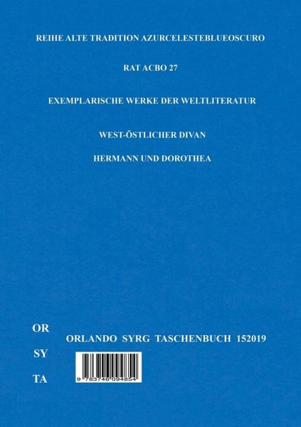 Hermann und Dorothea: Neben »Werther« Goethes erfolgreichstes Werk; 30 Auflagen allein zu seinen Lebzeiten. Hingerissen lobte August Wilhelm Schlegel das Hexameterepos, dessen neun Gesänge die Namen der Musen und Inhaltshinweise tragen: »Hermann und Dorothea ist ein vollendetes Kunstwerk im großen Stil, und zugleich fasslich, herzlich, vaterländisch, volksmäßig; ein Buch voll goldner Lehren der Weisheit und Tugend.«Ein wohlhabender Wirt will für seinen Sohn die gute Partie der begüterten Kaufmannstochter. Hermann verliebt sich jedoch in Dorothea, ein mittelloses Mädchen der vorbeiziehenden Flüchtlingsschar, will nur sie freien. Die Mutter steht ihrem Sohn bei. Pfarrer und Apotheker, Freunde der Wirtsfamilie, werden ausgesandt, um Erkundigungen über das Mädchen einzuziehen, die durchweg günstig ausfallen. Weil Hermann es aber, aus Angst vor einem Korb, nicht wagt, Dorothea seine Liebe zu gestehen, verpflichtet er sie nur als Magd und führt sie in sein Elternhaus. Nach Missverständnissen und Verwirrungen: Happyend.West-östlicher Divan: Von seiner Lektüre des Hafis, dem persischen Dichter (um 1320-1390), in der Übertragung von J. von Hammer-Purgstall, zutiefst beeindruckt einerseits und andererseits beglückt von seiner Begegnung mit Marianne von Willemer wurde Goethe zu dem Gedichtzyklus in 12 souverän, ironisch und heiter durchtränkten Büchern beseelt.Zwiesprache von Hafis und Suleika im Zentrum des Liebeserlebens, das sich lyrisch vollendet und weltumfassend weitet. Reales löst sich symbolisch auf, wird geläutert, »jedes einzelne Glied vom Sinn des Ganzen durchdrungen«, sich ineinander spiegelnd, Geheimnisvolles offenbar machend, Offenes geheimnisvoll chiffrierend. Liebe, Dichtertum, Weltfrömmigkeit, Gottesnähe, Naturverehrung, Trinkfreude et cetera; Aufbruch in den Osten, Zeitkritisches, witzige Spruchweisheiten, schmucke Parabeln, Timur und Napoleon, der junge Schenke, Vermächtnis altpersischen Glaubens, Paradies mit Huri.Die Noten und Abhandlungen zu besserem Verständnis des West-östlichen Divans sind zugleich: Kulturgeschichte, über alle Grenzen blickende, vergleichende Abhandlung literarischer Gestalten, Formen und ihrer Ästhetik, poetische Prosa, kritische Epochenauseinandersetzung mit autobiographischen Bezügen und Verortung von Goethes eigenem Standpunkt. [Joerg K. Sommermeyer]