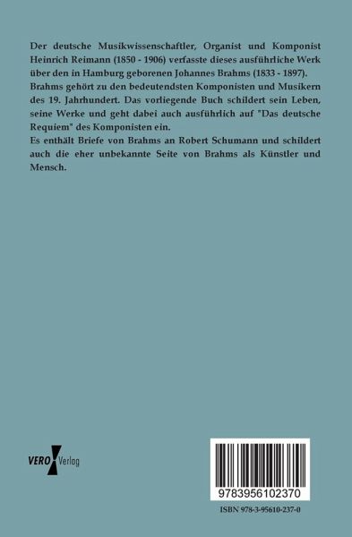 Der deutsche Musikwissenschaftler, Organist und Komponist Heinrich Reimann (1850 - 1906) verfasste dieses ausführliche Werk über den in Hamburg geborenen Johannes Brahms (1833 - 1897).