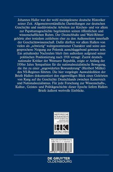 Johannes Haller war der wohl meistgelesene deutsche Historiker seiner Zeit. Allgemeinverständliche Darstellungen zur deutschen Geschichte und mediävistische Arbeiten zur Kirchen- und vor allem zur Papsttumsgeschichte begründeten seinen öffentlichen und wissenschaftlichen Ruhm. Der Deutschbalte und Wahl-Römer gehörte aber trotzdem zeitlebens eher zu den Außenseitern innerhalb der Geschichtswissenschaft. Dafür dürften vor allem Hallers von vielen als "schwierig" wahrgenommener Charakter und seine ausgesprochene Neigung zur Polemik ausschlaggebend gewesen sein. Ein anhaltender Nachruhm blieb ihm außerdem aufgrund seiner politischen Positionierung nach 1918 versagt: Zuerst deutschnationaler Kritiker der Weimarer Republik, zeigte er Anfang der 1930er Jahre Sympathien für die nationalsozialistische Bewegung, die ihn zu einer "angewiderten Bewunderung" (Heribert Müller) des NS-Regimes führten. Die hier vorgelegte Auswahledition der Briefe Hallers dokumentiert den eigenwilligen Blickeines Gelehrten von Rang auf die Geschichte Deutschlands zwischen Kaiserreich und Nationalsozialismus. Für jede Forschung zur Wissenschafts-, Kultur-, Geistes- und Politikgeschichte dieser Epoche liefern Hallers Briefe äußerst wertvolle Einblicke.