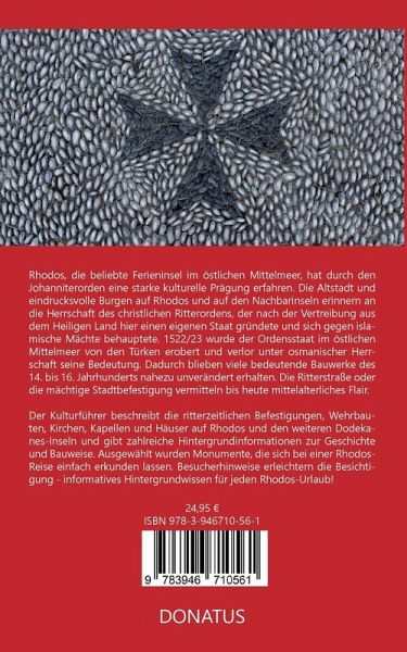 Rhodos, die beliebte Ferieninsel im östlichen Mittelmeer, hat durch den Johanniterorden eine starke kulturelle Prägung erfahren. Die Altstadt und eindrucksvolle Burgen auf Rhodos und auf den Nachbarinseln erinnern an die Herrschaft des christlichen Ritterordens, der nach der Vertreibung aus dem Heiligen Land hier einen eigenen Staat gründete und sich gegen islamische Mächte behauptete. 1522/23 wurde der Ordensstaat im östlichen Mittelmeer von den Türken erobert und verlor unter osmanischer Herrschaft seine Bedeutung. Dadurch blieben viele bedeutende Bauwerke des 14. bis 16. Jahrhunderts nahezu unverändert erhalten. Die Ritterstraße oder die mächtige Stadtbefestigung vermitteln bis heute mittelalterliches Flair. Der Kulturführer beschreibt die ritterzeitlichen Befestigungen, Wehrbauten, Kirchen, Kapellen und Häuser auf Rhodos und den weiteren Dodekanes-Inseln und gibt zahlreiche Hintergrundinformationen zur Geschichte und Bauweise. Ausgewählt wurden Monumente, die sich bei einer Rhodos-Reise einfach erkunden lassen. Besucherhinweise erleichtern die Besichtigung - informatives Hintergrundwissen für jeden Rhodos-Urlaub!