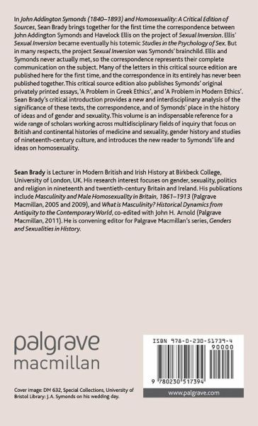The book brings together for the first time John Addington Symonds' key writings on homosexuality, and the entire correspondence between Symonds and Havelock Ellis on the project of Sexual Inversion. The source edition contains a critical introduction to the sources.