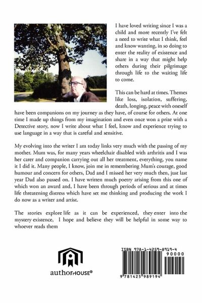 I have loved writing since I was a child and more recently I've felt a need to write what I think, feel and know wanting, in so doing to enter the reality of existence and share in a way that might help others during their pilgrimage through life to the waiting life to come. This can be hard at times.Themes as loss, isolation, suffering, death, longing , peace with oneself have been companions on my journey as they have, of course for others. At one time I made up things from my imagination and even once won a prize with a Detective story, now I write about what I feel, know and experience trying and use language in a way that is careful and sensitive. My evolving into the writer I am today links very muc with the passing of my mother. Mum was, for many years wheelchair disabled with arthritis and I was her carer and companion carrying out all her treatment, everything, you name it I did it. Many people, I know, join me in remembering Mum's courage, good humour and concern for others, Dad and I missed her very much then, just last year Dad also passed on. I have written much poetry arising from this one of which won an award and, I have been through periods of serious and at times life threatening distress which have set me thinking and producing the work I do now as a writer and artist. The stories explore life as it can be experienced, they enter into the mystery existance, I hope and believe they can will be helpful in some way to whoever reads them