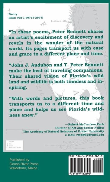 After the publication of the first volume of The Birds of America and its heralded reception in Philadelphia, John Audubon and his two assistants departed in late September 1831 to the new Florida territory to pursue, collect and draw Florida waterbirds and regional exotics for Audubon's Great Work. Enroute, they established a "base camp" In Charleston with John Bachman a resident. Audubon learned of his election to the Academy of Natural Sciences and began his correspondence and writing about his daily exploration adventures. Using government ships and accomodations, they sailed for St. Augustine: explored and collected bird specimens in North Florida, and Audubon drew birds for his Great Work. Next, they sailed for Key West, stopping for collecting at Keys along the way. They spent time in Key West with great success and in late May 1832 the Audubon party returned to Charleston and Philadelphia. Audubon continued his journals and incorporated his drawings, paintings into his "great work," The Birds of America. ¿¿After the publication of the first volume of The Birds of America and its heralded reception in Philadelphia and London, Audubon departed from England in July 1831 for his next adventure: to pursue Florida waterbirds and other regional exotics. Accompanying him on the ship were his wife Lucy and Henry Ward, a young English taxidermist whom Audubon had engaged to assist in collecting and preserving specimens during the Florida expedition. Their first destination was Philadelphia, where Audubon hired George Lehman, a Swiss landscape painter, to accompany him and Ward in Florida. Mrs. Audubon departed for Louisville. Audubon also arranged with G.W. Featherstonehaugh, the editor of The Monthly American Journal of Geology and Natural Science, to publish reports of their Florida journey.In late September 1821, Audubon and his two assistants traveled to Washington. Here, the Secretary of the Navy and the Secretary of the Treasury approved the party's travel out of Charleston on a government revenue cutter to the Floridian coastal outposts between St. Augustine and Key West. The party left Washington and traveled by various modes of transport until, in Audubon's words, they "at length approached Charleston . . . with unfeigned delight."Audubon's expedition was intended to last from late November 1831 to the end of May 1832. It included the north Florida area, which had been explored by William Bartram in his Travels, and it would continue along the Atlantic coast to Key West. However, circumstances changed, and Audubon's party first explored slightly southward near St. Augustine, then around the St. Johns River, from November 20, 1831, until March 5, 1832. They returned to Charleston and spent a month with Bachman, then traveled directly to the Florida Keys, where they explored from April 15 through May 31, 1832.For Audubon, as reflected in his letters and journal entries, the north Florida exploration was less productive and less enjoyable than their exploration of the Florida Keys. Both areas prompted his many paintings, writings, and letters about Florida's birds and natural history. These inspired and informed John Audubon Explores Florida: Poems.